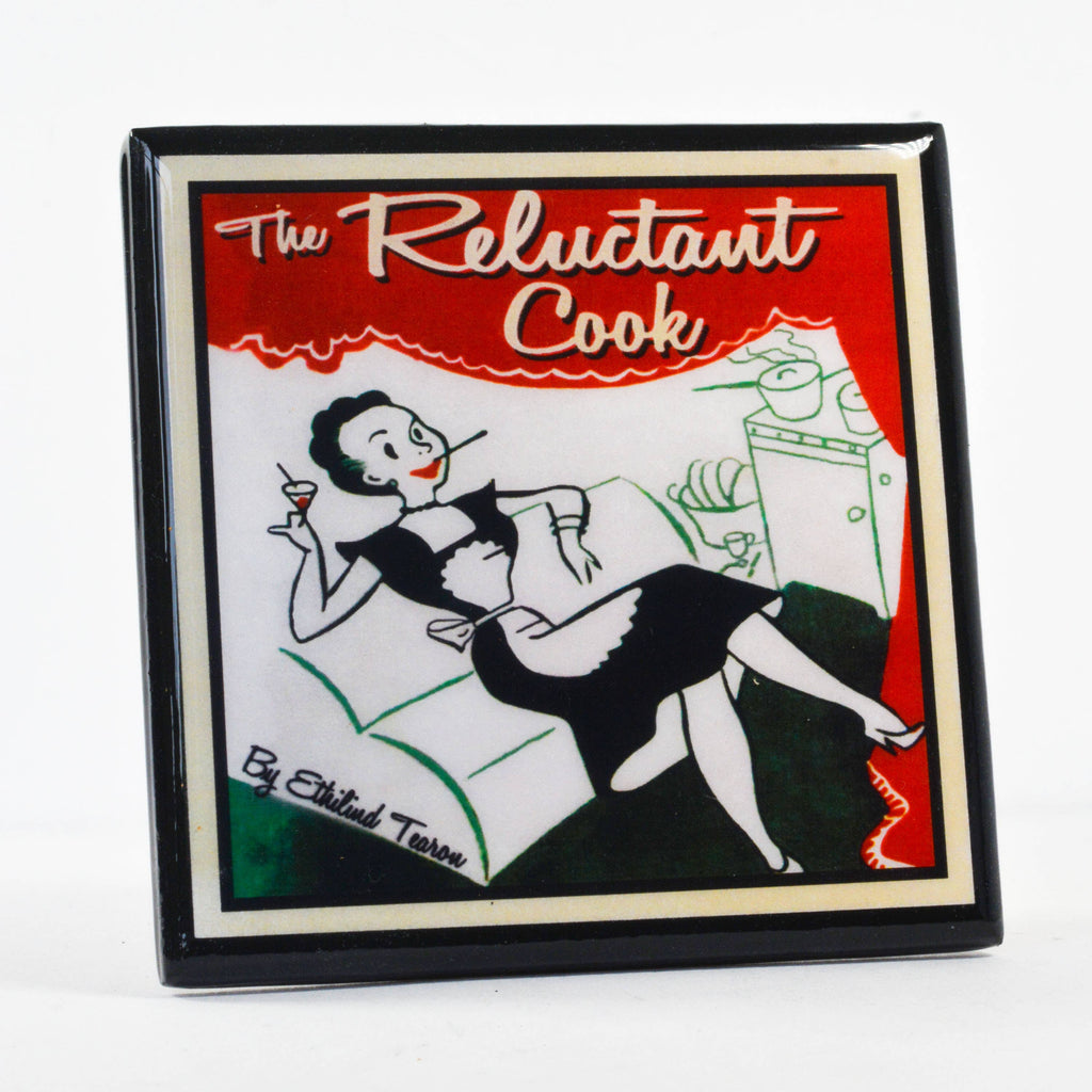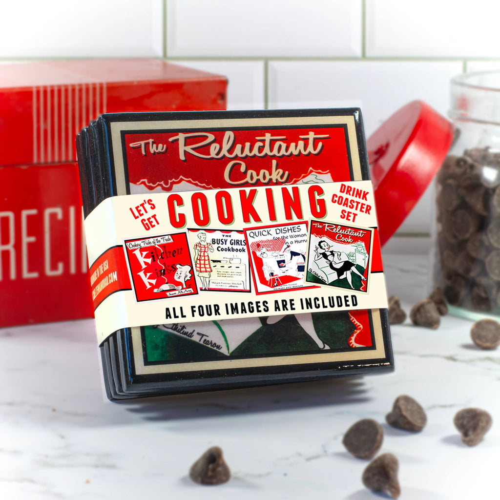 Coaster Set, Funny Vintage Cookbook Cover Kitchen