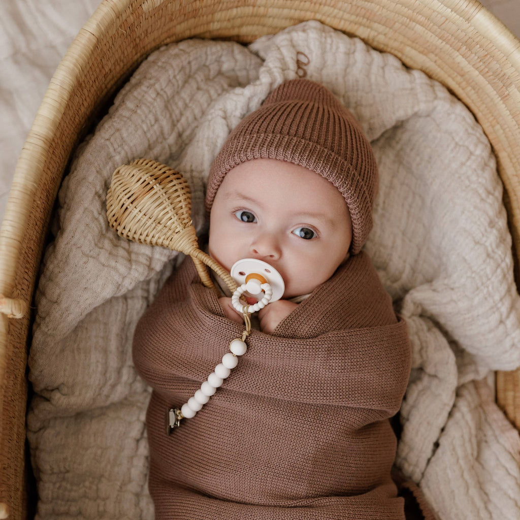 Our sets includes two matching pacifiers and clips, ensuring your pacifier stays secure, and within reach wherever you go. Our clips feature a gentle, yet reliable clasp that attaches easily to clothing, blankets, or diaper bags. Together, our pacifier and clip sets are the perfect blend of practicality and elegance for on-the-go soothing and a great gift!
